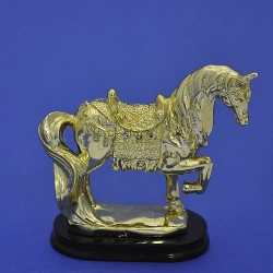 AF-12045 (48) 11*10см. Фигурка "Лошадь", из полистоуна, на деревянной подставке, позолоченная