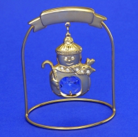 U-4604-I14RU/GB 10см. Снеговик "С Новым годом" подвесной на подставке с голубыми хрусталиками
