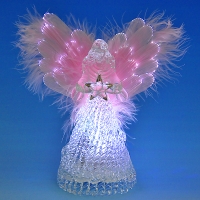 GM-316916 (30)9*6*13см. Стеклянная статуэтка "Ангел со звездой" со светодиодной подсветкой, крылья из перьев