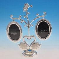 NP-10022 (12) 20*17см. Фоторамка "Влюбленные лебеди", посеребренная со стразами, на 2-е фотографии