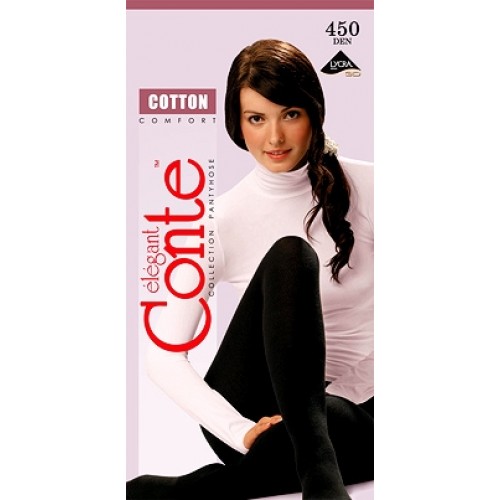 COTTON 450 XL (хл 43%, акрил 43%, п/а 11%, эл 3%) Теплые плотные колготки из хлопка с лайкрой 3D, плоск шов, анатомич. пятка, уплотн. мысок