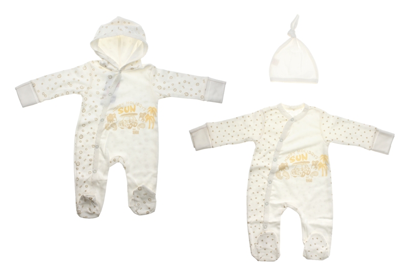 Комбинезон с кнопками на груди с капюшоном с принтом