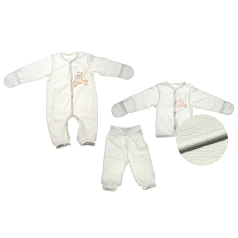 Чудесный комплект одежды для новорожденных малышей из трех предметов - комбинезон, кофточка и штанишки, с легкостью справится с функциями домашней одежды.