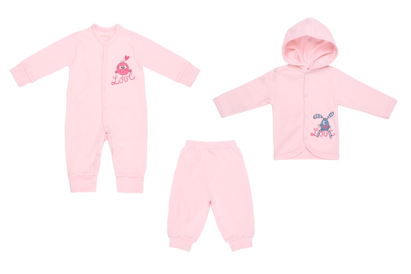Описание:Комплект: комбинезон,кофта с капюшоном,штанишки интерлок розовый с принтом