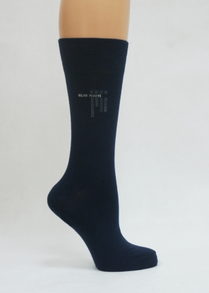 Однотонный носок с тремя средними полосами и надписью "blue jeans" на паголенке.