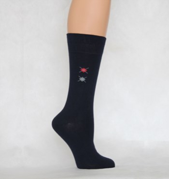 Однотонный носок сбоку на паголенкее вывязаны два цветных ромба