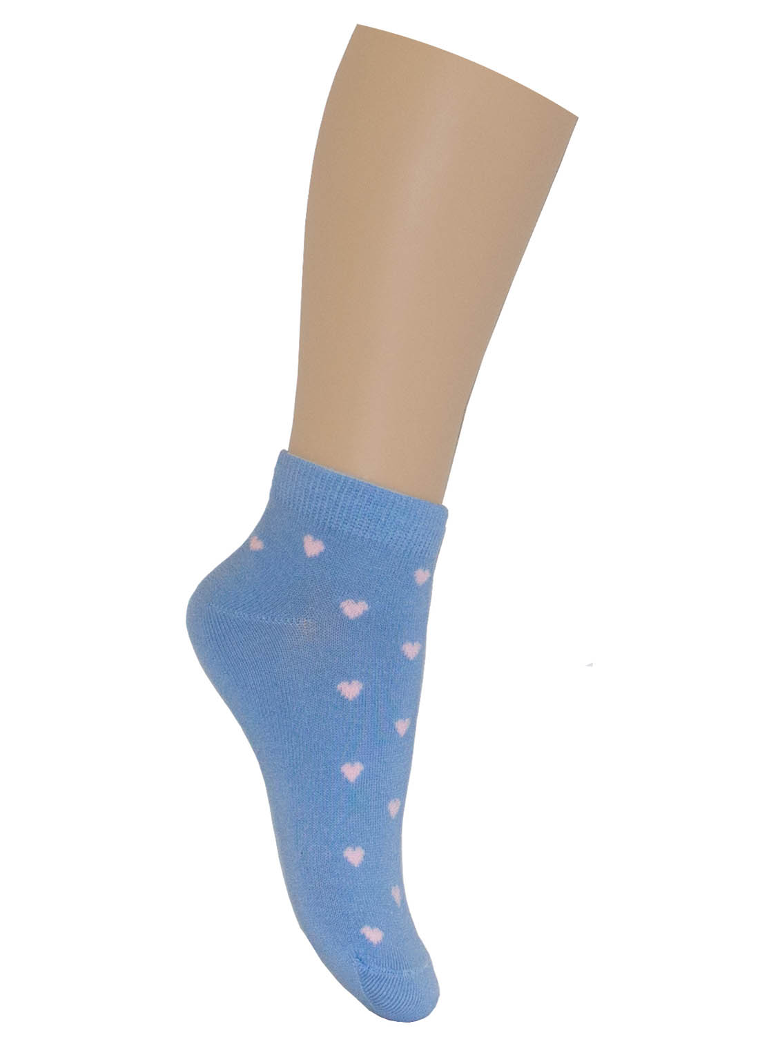Укороченный носок, по всему носку вывязаны мелкие сердечки