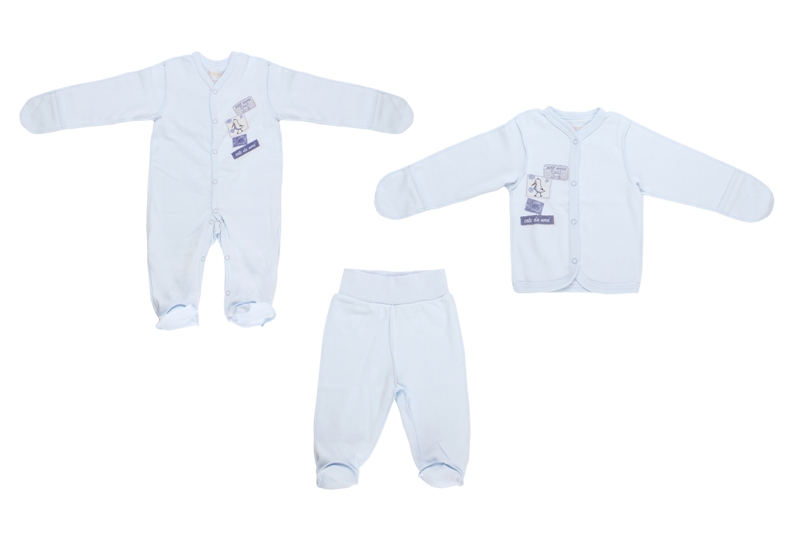 Описание:Комплект: комбинезон,ползунки,кофточка интерлок голубой
