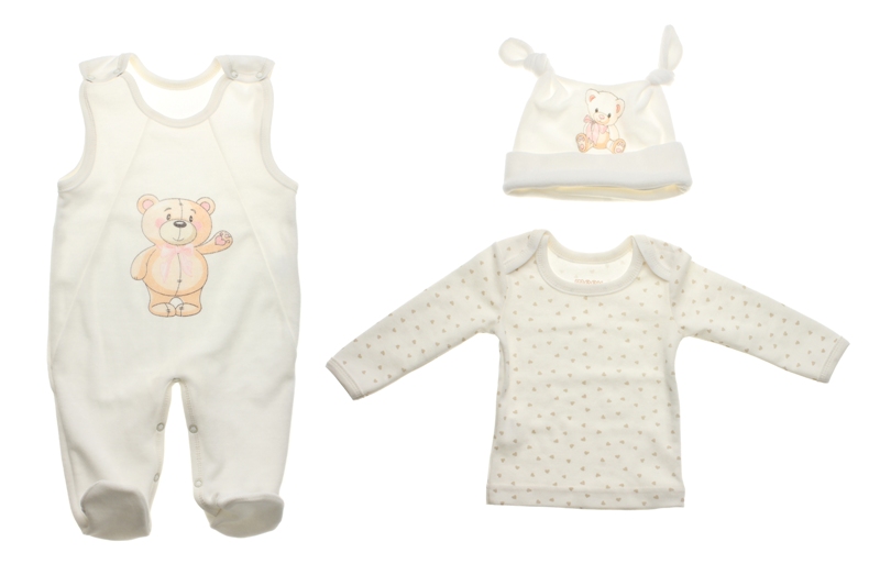 Чудесный полукомбинезон, шапочка и футболочка обязательно займут достойное место в гардеробе вашего новорожденного малыша.
