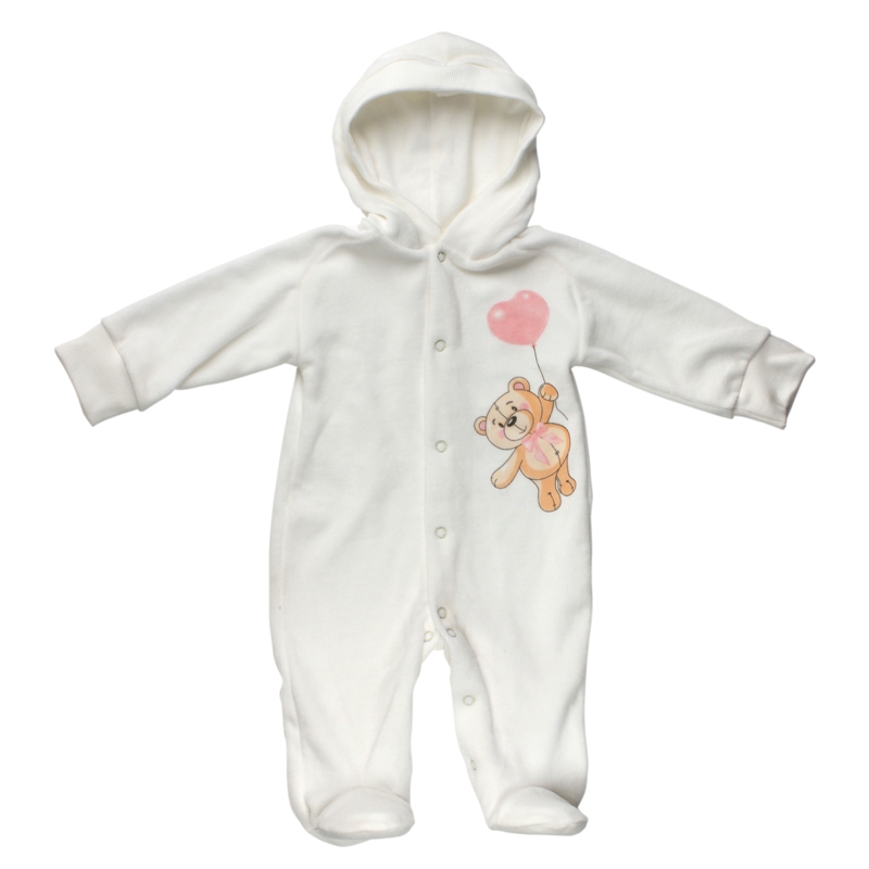 Теплый бархатистый велюровый комбинезончик с капюшоном для новорожденных окружит вашего малыша теплом и уютом.
