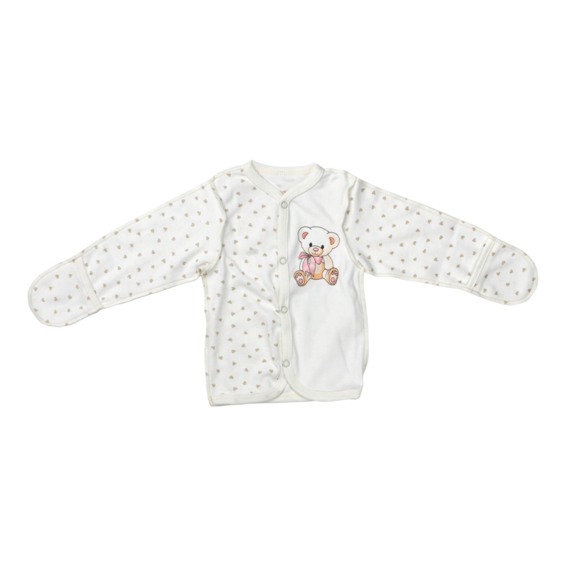 Кофточка для новорожденных на кнопках из 100% хлопка с принтом в виде милого мишки отлично сочетается с любыми штанишками нашей коллекции, что делает ее универсальным предметом одежды.