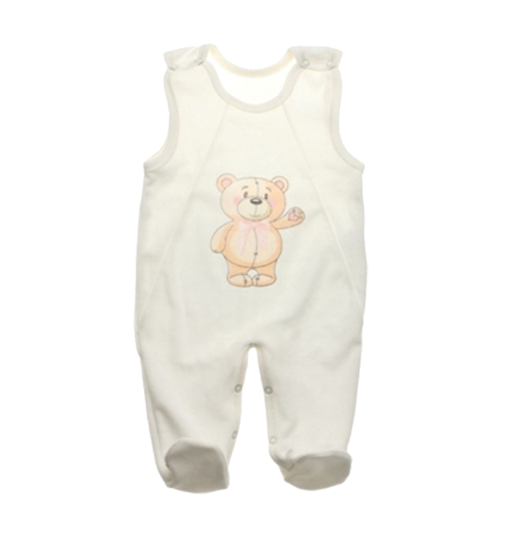Нежный велюровый полукомбинезон с милым мишкой по центру, можно носить как нижнее белье под одеждой или как вполне самостоятельный комплект, заменяющий штанишки и маечку.