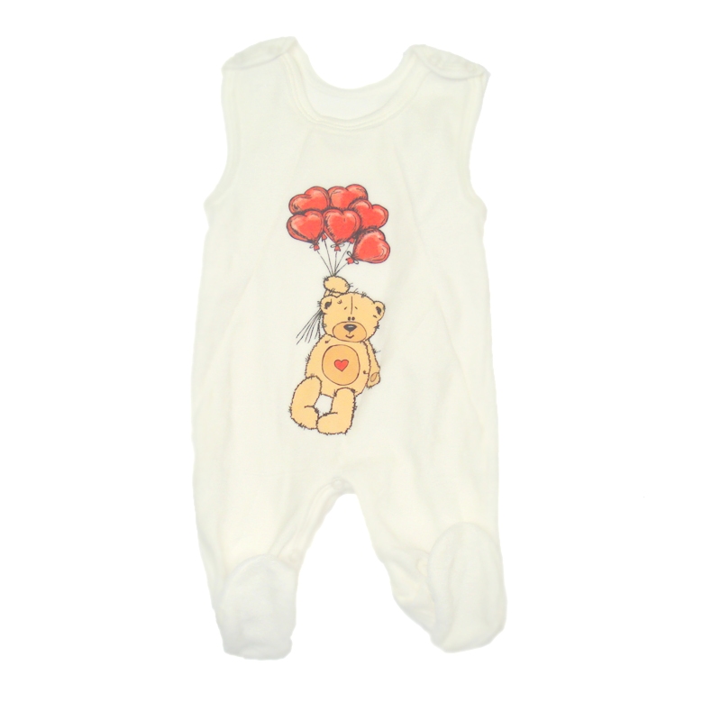 Нежный велюровый полукомбинезон с милым мишкой на воздушном шарике по центру, можно носить как нижнее белье под одеждой или как вполне самостоятельный комплект, заменяющий штанишки и маечку.