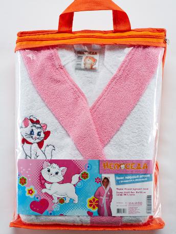 Халат махровый детский с капюшоном и аппликацией "Непоседа" 116-122см модель Кошка-мурлыка розовый 207844