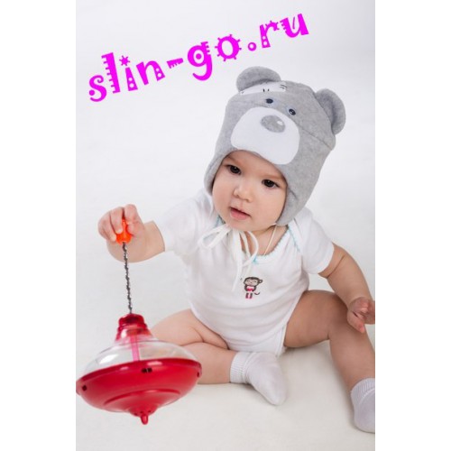 Шапочка флисовая "Мишка Тедди" серый 12-24мес.