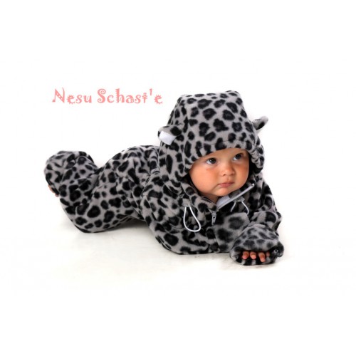 У вашего малыша, несмотря на нежный возраст, уже пробивается гордый и независимый характер? Он все хочет делать сам и даже пытается гулять ? Для таких свободолюбивых малышей мы придумали комбинезон - озорные пятнышки на шкурке, кошачьи ушки на капюшоне как нельзя кстати придутся для вашего котенка, который грозит со временем превратиться в леопарда.