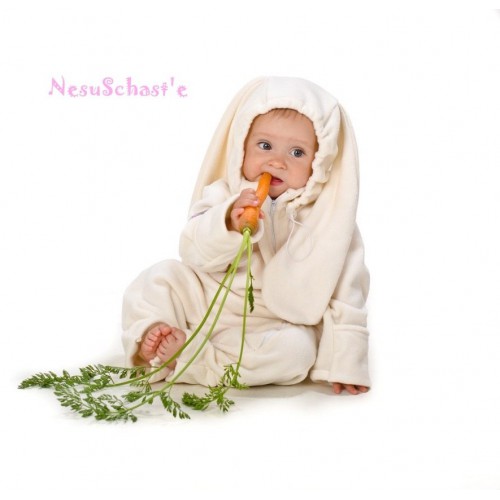 Комбинезон флисовый "Зайка" молочный, обновлённый! 12-24мес.