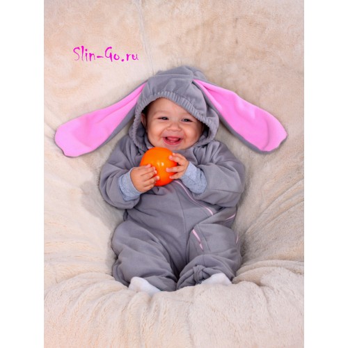 Медвежонок, тигренок, слоненок, котенок... и, конечно же, зайка! Какая мама не называет своего малыша этим ласковым прозвищем! Благодаря нашему смешному слнгокомбинезону вы можете легко превратить своего ребенка в зайчишку! Серая шубка и розовые ушки подойдут как мальчикам, так и девочкам.