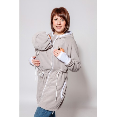 Изысканность и простота -- вот главное отличие слингокуртки . Ничего лишнего -- только стройный силуэт мамы и малыша, подчеркнутый нежным светло-серым цветом. Белоснежные элементы куртки (подклад капюшона, кулиски, оторочки на карманах) добавят вашему образу чистоты и праздничной свежести .