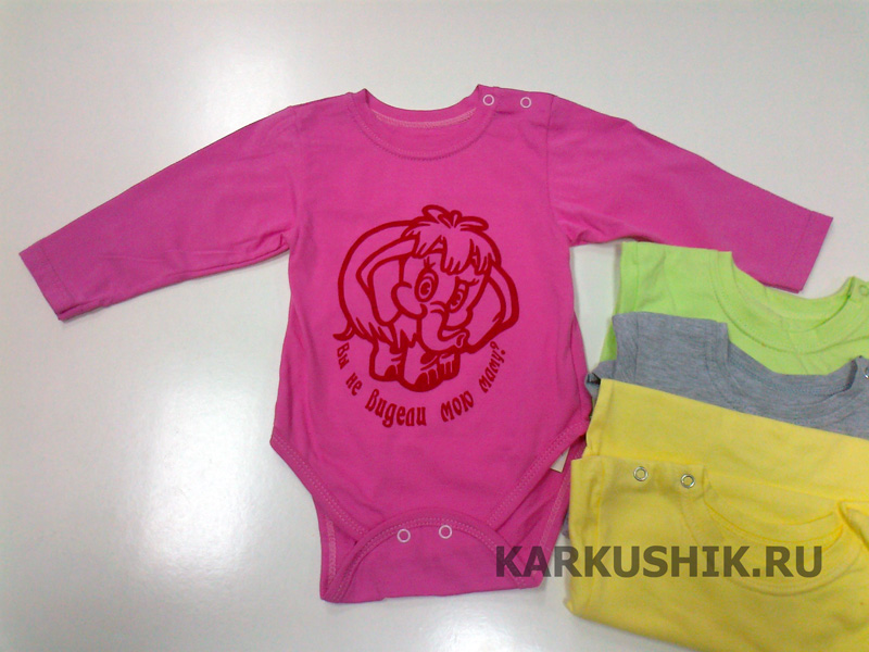 Боди - футболка из тонкого трикотажа кулир, две кнопки на плече, впереди большой рисунок. Трикотаж - тонкий кулир, 100% хлопок.