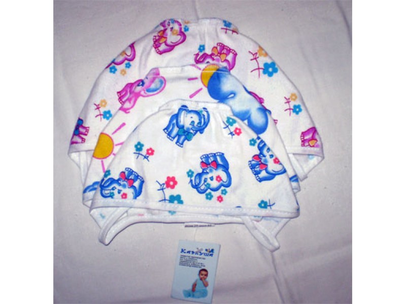 Чепчик теплый фланелевый 100% хлопок, размеры 20 (36см.) - 24 (42см.).