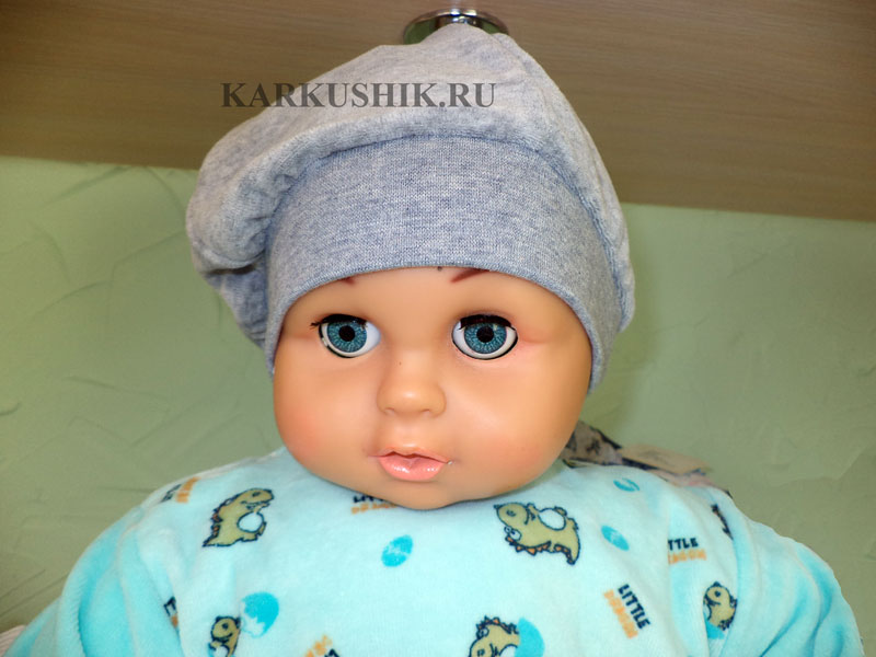 Шапочка - беретик, велюровый, без подклада, ободок из мягкого ластика. Размеры 18 (рост 56см., объем головы 36-37см.) - 24 (рост 74см., объем головы 48см.).