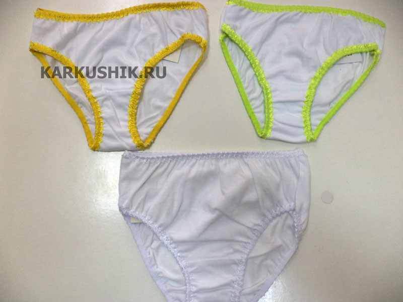 Трусы для девочек, с ажурной резинкой, белый трикотаж кулир, размеры 26 (80см.) - 36 (128см.). Резинка может быть как белая, так и цветная.