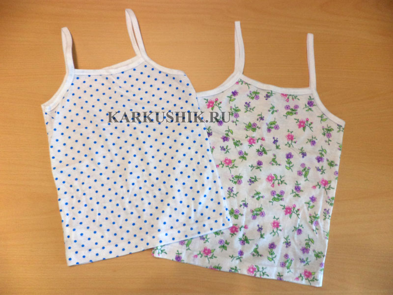 Майка для девочек с узкими бретельками из тонкого трикотажа кулир, размеры 26 (80см.) - 36 (122см.). Изделие полномерное.