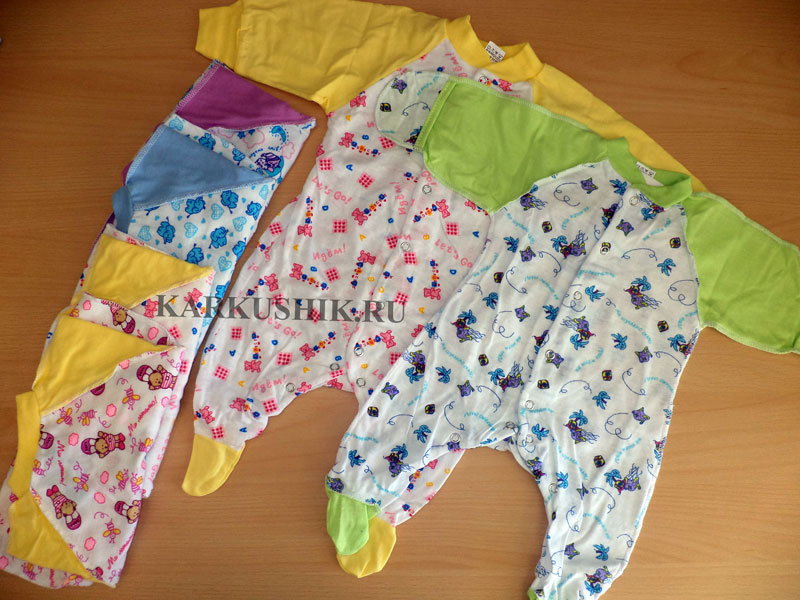 Комбинезон детский из тонкого трикотажа кулир. 18-20 размер закрытая - открытая ручка, швы наружу, остальные размеры открытый рукав с манжетом. Размеры с 18 (56 см.) по 26 (80 см.)