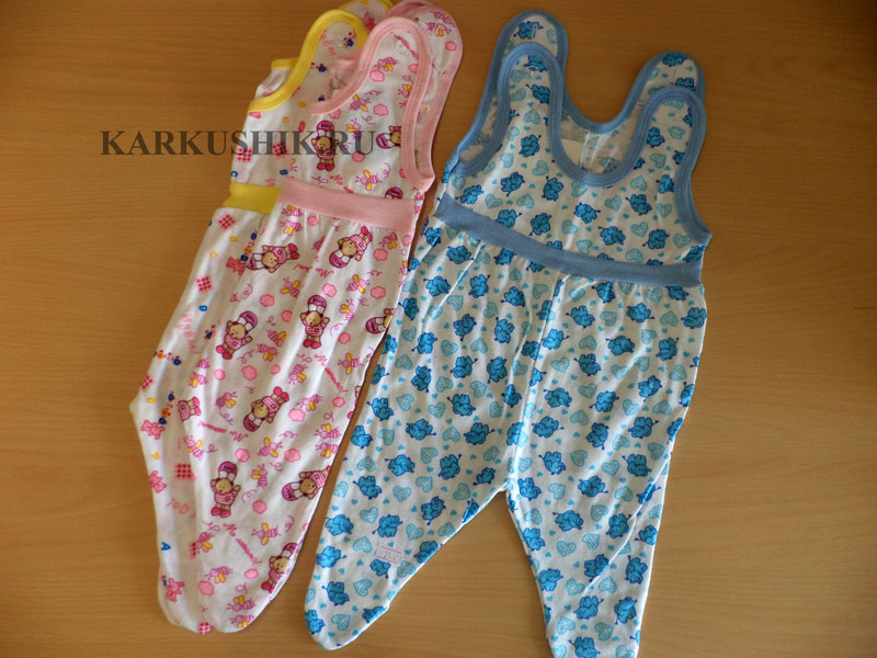 Ползунки высокие тонкие. Лямки застегиваются на пуговицах. Размеры 18 (56см.) - 26 (80см.)