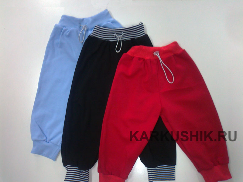Штанишки из плотного, мягкого трикотажа интерлок, на манжете внизу, пояс - широкая резинка. Размеры 20 (62см) - 38 (128см)