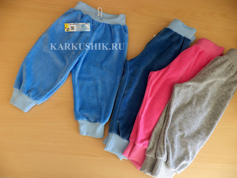 Штанишки детские из трикотажа велюр, внизу на манжете, размеры 20 (62см.) - 38 (122см).
