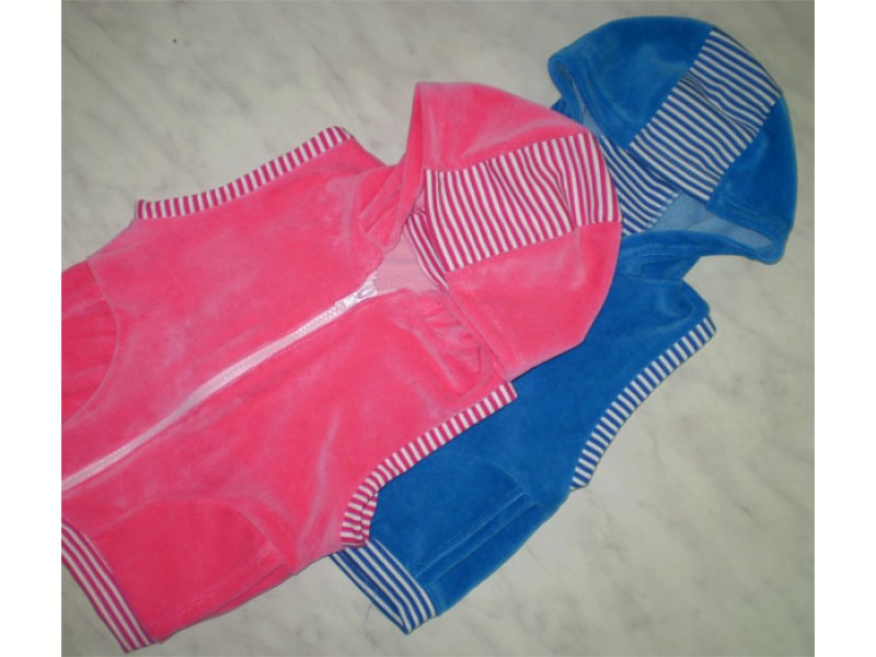 Жилет с капюшоном велюровый, на молнии, с карманами. Отделка плотным ластиком. Размеры с 24 (74см.) по 32 (98см.)