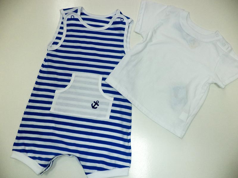 Песочник летний из тонкого трикотажа кулир, для детей до года, кнопки на плечиках и между ножек. Размер 20 (62см.) - 26 (80см.). Расцветка комплекта - морская, футболка в составе комплекта - белая. Хлопок 100%.