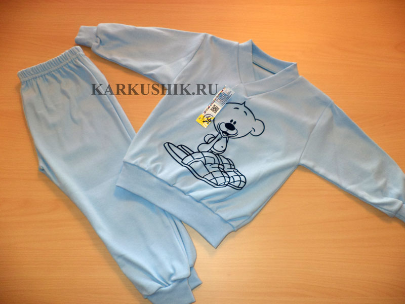 Пижама детская из плотного трикотажа интерлок, кофта на манжете и штанишки на манжете, размеры 26 (80см) - 36 (116см)