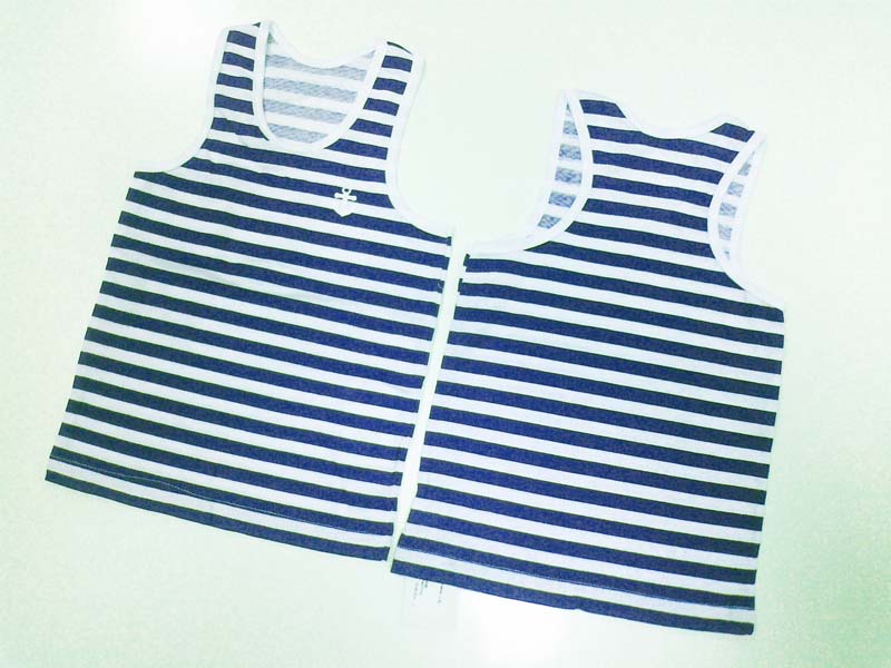 Майка для мальчиков из тонкого трикотажа кулир, борцовка, расцветка в морскую полоску, стилизовано под морскую тематику. Возможен комплект с простыми шортами серии 313Т4Х как комплектное изделие. Размеры 24 (74см.) - 36 (122см.). Изделие идет размер в размер