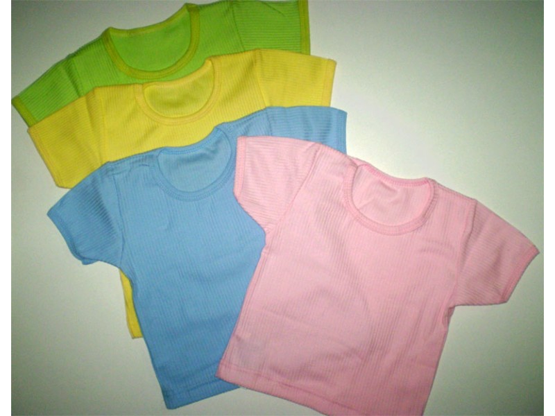 Футболка детская с коротким рукавом.Трикотаж в рубчик (хлопок 100%). Размеры с 26 (80см.) - 36 (116см.). Цвета: салат, желтый, белый, голубой, розовый.