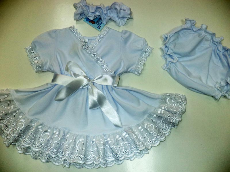 Платье из тонкого трикотажа - кулир (хлопок 100%), короткий рукав, юбка по низу отделана широкой прошвой. Белое платье часто применяют на крещение ребенка. Вместе с платьем идут трусики под памперс из тонкого трикотажа (арт. 15Т44х) и изящная тонкая повязка на голову (арт. 453Т124)