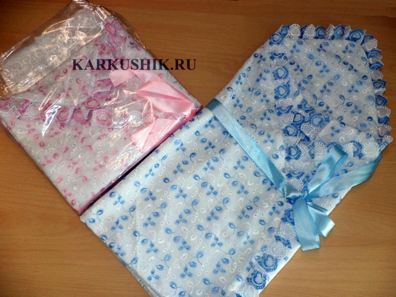 Конверт для новорожденных летний, из очень красивой, нарядной ткани, возможно использовать на выписку из роддома. Внутри подкладка из белого ситца. В разложенном виде идет как покрывало 90х90. Отшивается белым, розовым, голубым