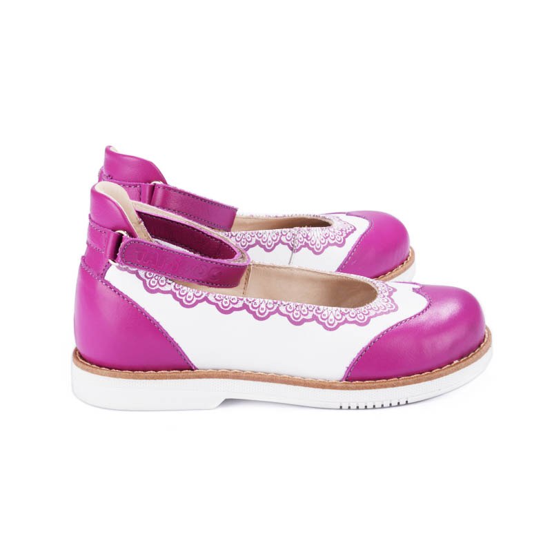 Детские туфли для ежедневной профилактики плоскостопия. Конструкция создана с учетом анатомических особенностей стопы ребенка, способствует формированию правильного стереотипа походки, здоровому развитию стопы и опорно-двигательного аппарата в целом. Отличный выбор для подвижных детей - не сковывает движений, не натирает. Подошва обуви - упругая, умеренно эластичная, искусственный перекат способствует оптимальному распределению нагрузки при ходьбе. Обувь имеет специальный ортопедический "каблук Томаса" с увеличенной внутренней стороной.