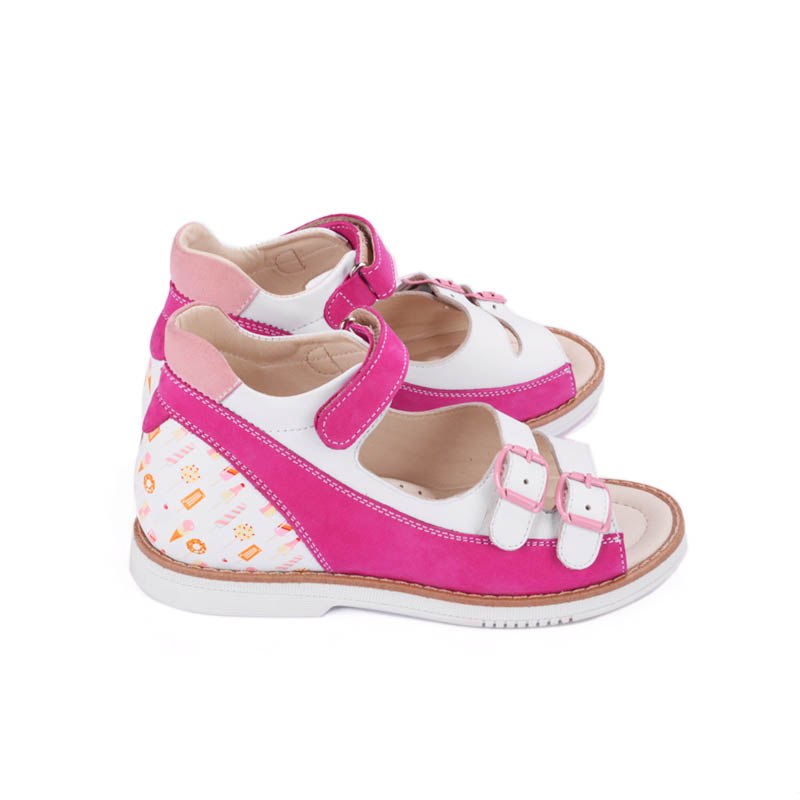 Детские сандалии для ежедневной профилактики плоскостопия. Конструкция создана с учетом анатомических особенностей стопы ребенка, способствует формированию правильного стереотипа походки, здоровому развитию стопы и опорно-двигательного аппарата в целом. Отличный выбор для подвижных детей - не сковывает движений, не натирает. Подошва обуви - упругая, умеренно эластичная, искусственный перекат способствует оптимальному распределению нагрузки при ходьбе. Обувь имеет специальный ортопедический "каблук Томаса" с увеличенной внутренней стороной.