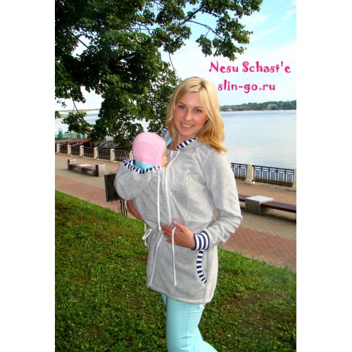 У кого из нас в детстве не было морского костюмчика с отложным воротничком? Столько лет прошло, а морская тема в одежде остается такой же популярной! В слингокофте <<Морячка>> вы тоже сможете подарить вашему малышу настоящее морское приключение! Теплый флис светло-серого цвета согреет вас прохладными вечерами, а белые молнии, полосатые манжеты и оторочки в стиле <<тельняшка>> сделают ваш наряд по-летнему свежим и ярким. Благодаря регулирующим кулискам вы всегда будете выглядеть стройной морячкой, а малыша не продуют никакие ветры. Кофту можно носить со слинговставкой и просто как кофту для кормления (по бокам есть удобные секреты на молнии). Комплект дополняется вставкой для беременных.