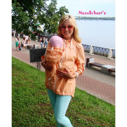 Когда по всей стране такое дождливое лето, самое время позаботиться о летней слингокуртке! Легкая куртка-парка <<Коралл>> нежно-оранжевого сделана из непромокаемой ткани и натурального хлопка. Она приятная на ощупь, а благодаря водонепроницаемому верху дождь и сырость не доберутся до вас с малышом. Элегантные глубокие карманы на кнопках пригодятся для полезных мелочей, а рукава можно носить длинными или интересно подворачивать на три четверти и фиксировать с помощью застежки на кнопке. С летней паркой <<Коралл>> вы всегда будете готовы к любым сюрпризам погоды!