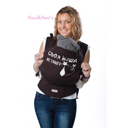 Самый удобный эргорюкзак -- это, конечно, тот, в котором <<своя ноша не тянет>>. Мы сделали для этого всё -- придумали мягкие лямки для удобного распределения нагрузки, широкий пояс и вдохновляющую маму-кошку с котенком! Любой малыш покажется вам пушинкой, если вы посмотрите, как ловко наша изящная кошка <<жонглирует>> своим маленьким котенком на хвосте. Обратите внимание на этот рисунок -- это шелкография, такие рисунки <<вечные>>, и долго будут радовать вас своими яркими цветами. Актуальная надпись на спинке <<Своя ноша не тянет>> будто <<нацарапана>> кошачьей лапой. В таком стильном рюкзаке вы будете модной мамой! Котики правят миром!