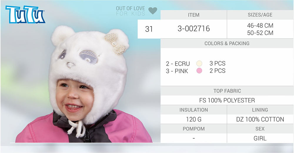 Шапка швейная из коллекции "TuTu ЗИМА". Новый сезон 2015-2016гг