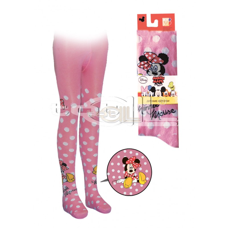 Колготки детские, гладь, на рисунке сядящая Минни. Принт по центру, бант в верхней части бедра.