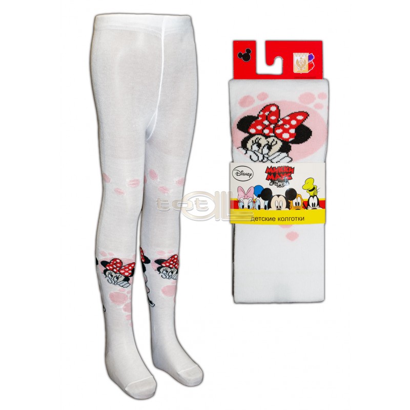 Колготки детские, гладь, на рисунке изображена выглядывающая Минни в кружочке.