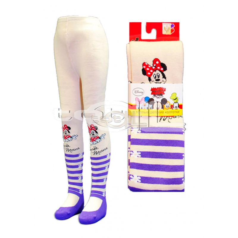 Колготки детские, плюш, портрет Минни + полоски