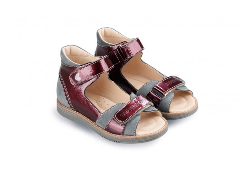 Детские сандалии для ежедневной профилактики плоскостопия. Широкий, устойчивый каблук, специальной конфигурации <<каблук Томаса>>. Каблук продлен с внутренней стороны до середины стопы, чтобы исключить вращение (заваливание) стопы вовнутрь (пронационный компонент деформации, так называемая косолапость, или вальгусная деформация). Многослойная, анатомическая стелька со сводоподдерживающим элементом для правильного формирования стопы. Благодаря использованию современных внутренних материалов позволяет оптимально распределить нагрузку по всей площади стопы и свести к минимуму ее ударную составляющую. Жесткий фиксирующий задник с удлиненным <<крылом>> надежно стабилизирует голеностопный сустав во время ходьбы, препятствуя развитию патологических изменений стопы.