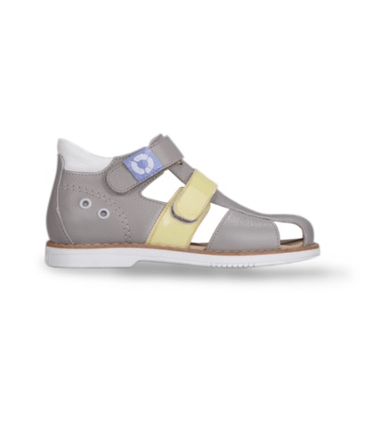 Сандалии для ежедневной профилактики плоскостопия. Широкий, устойчивый каблук специальной конфигурации - каблук Томаса. Каблук продлен с внутренней стороны до середины стопы, чтобы исключить вращение или заваливание стопы вовнутрь, так называемая косолапость, или вальгусная деформация. Многослойная, анатомическая стелька со сводоподдерживающим элементом для правильного формирования стопы. Жесткий фиксирующий задник с удлиненным крылом надежно стабилизирует голеностопный сустав во время ходьбы. Упругая, умеренно-эластичная подошва, имеющая перекат позволяющий повторить естественное движение стопы при ходьбе для правильного распределения нагрузки на опорно-двигательный аппарат ребенка. Подкладка из натуральной кожи теленка без швов. Кожа теленка обладает мягкостью и природной способностью пропускать воздух для создания оптимального температурного режима, нога не потеет. Отсутствие швов на подкладке обеспечивает дополнительный комфорт и предотвращает натирание.